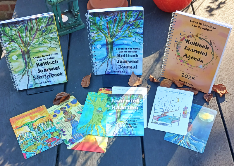 Natuurlijk, leven in deze snelle overprikkelende 24/7 maatschappij is een uitdaging. Om onszelf en anderen daarbij te helpen, hebben we een handboek/journal, een agenda, een schrijfboek en kaarten gemaakt waarin het Keltisch Jaarwiel centraal staat. Het Jaarwiel eindigt op 31 oktober en begint op 1 november.