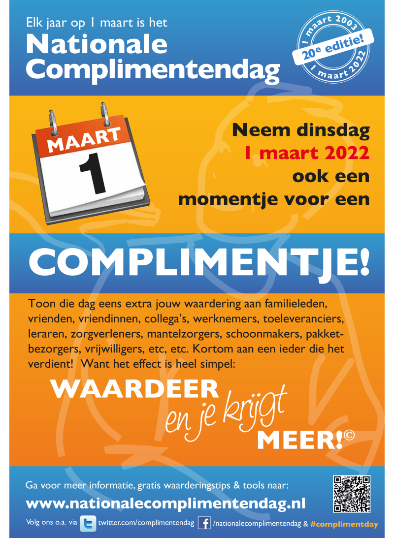 Weet je niet zo goed waar je moet beginnen, of kun je wat hulp gebruiken bij het bedenken van een complimentje, dan kun je terecht op de site van de Nationale Complimentendag.